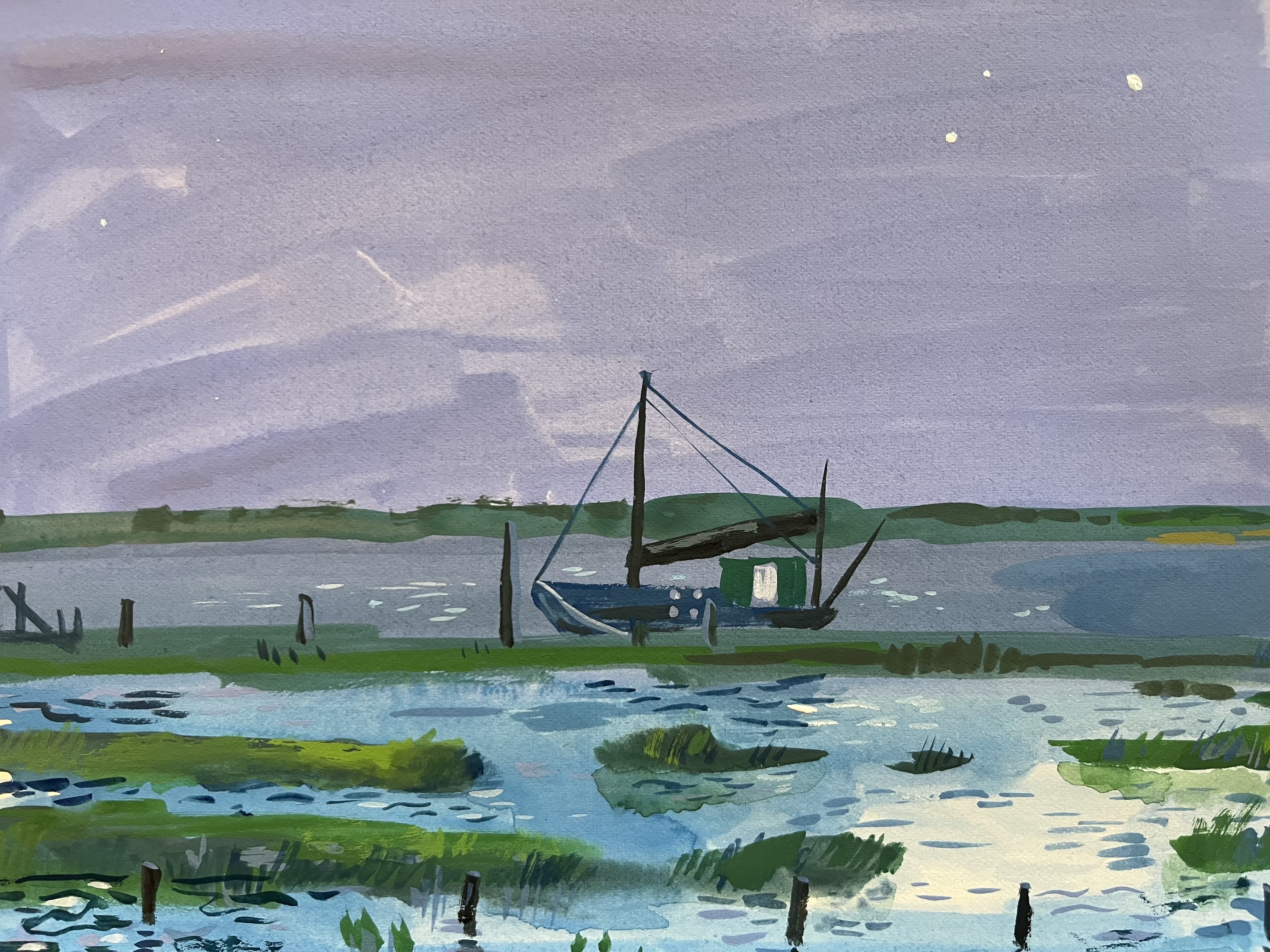 Rosie Reeve works quickly in gouache and pastel. She has spent the summer painting landscapes in Norfolk, Dorset and London.