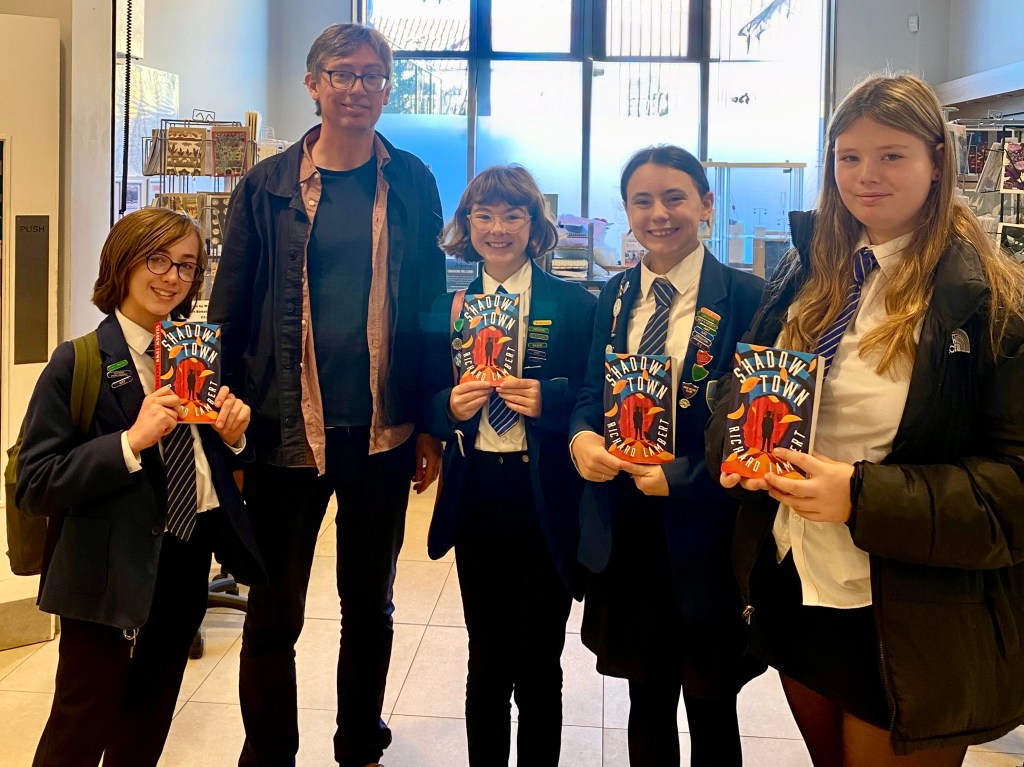 Alderman Peel High School Year 8’s visited Wells Maltings to hear about Richard Lambert‘s middle-grade fantasy novel Shadowtown (below). Richard led the children in writing exercises, and showed them how he puts his novels together before handing each a signed copy. Afterwards in their classrooms the school’s English teachers led discussions and encouraged the children to read on through the book; some groups studied and experimented with reproducing the effects of Richard’s writing while others explored his scenes and characters through drama.