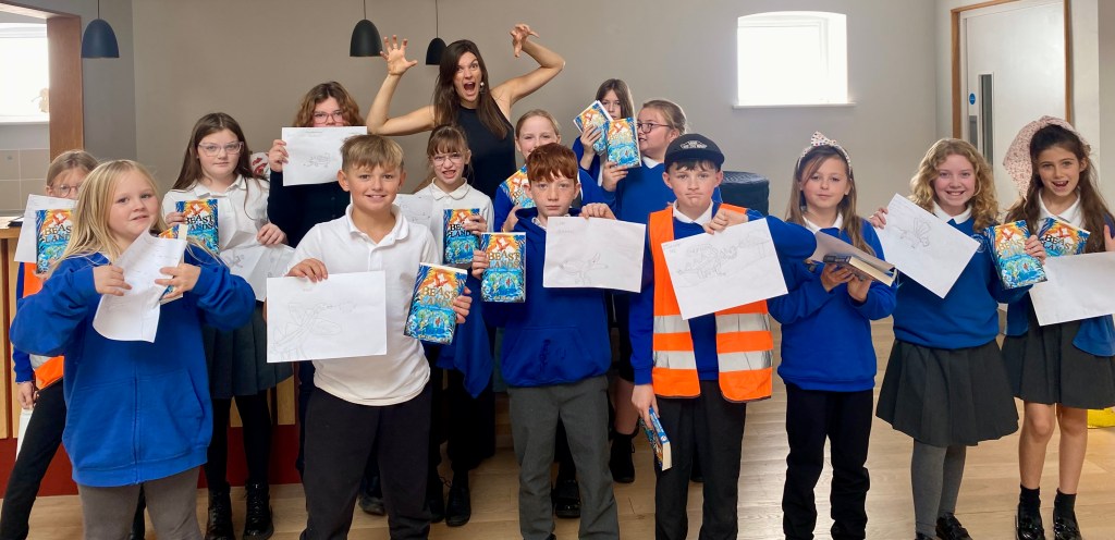 Children from years 4, 5 and 6 at Wells-next-the-sea Primary and Nursery School and Langham Village School enjoyed author talks by Jess French (below) about the first book in her fantasy series – Beastlands: Race to Frostfall Mountain. Each child took home a signed copy of Jess’s book: