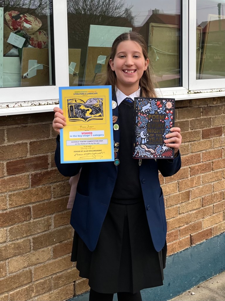 Poppy J, from Alderman Peel High School, was awarded a certificate, a copy of Allie Esiri’s collection A Poem for Every Night of the Year and a £25 book token for her winning poem in the senior category: ‘Secrets in the sea’.